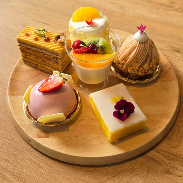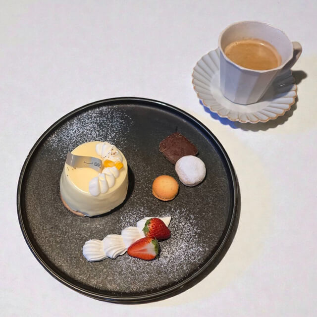 本日のケーキとスタジオ自慢の焼き菓子がセットのケーキプレートです。ドリンクもいっしょにどうぞ