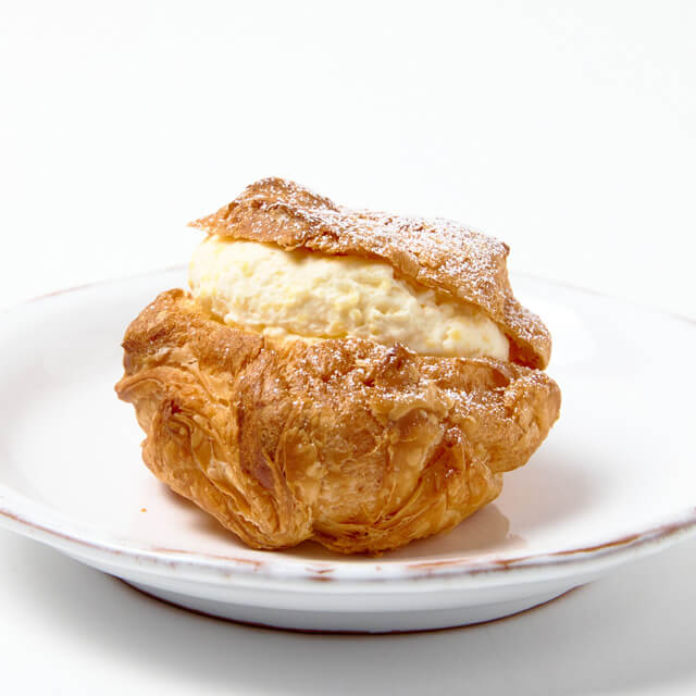サクッと香ばしいパイ生地に、甘さ控えめな生クリームと濃厚な黄金色カスタードを使用したご褒美シュー
