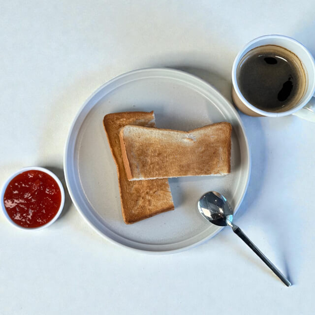 ドリンクに食パンor焼き立てパンがついてくるお手軽なプレートです